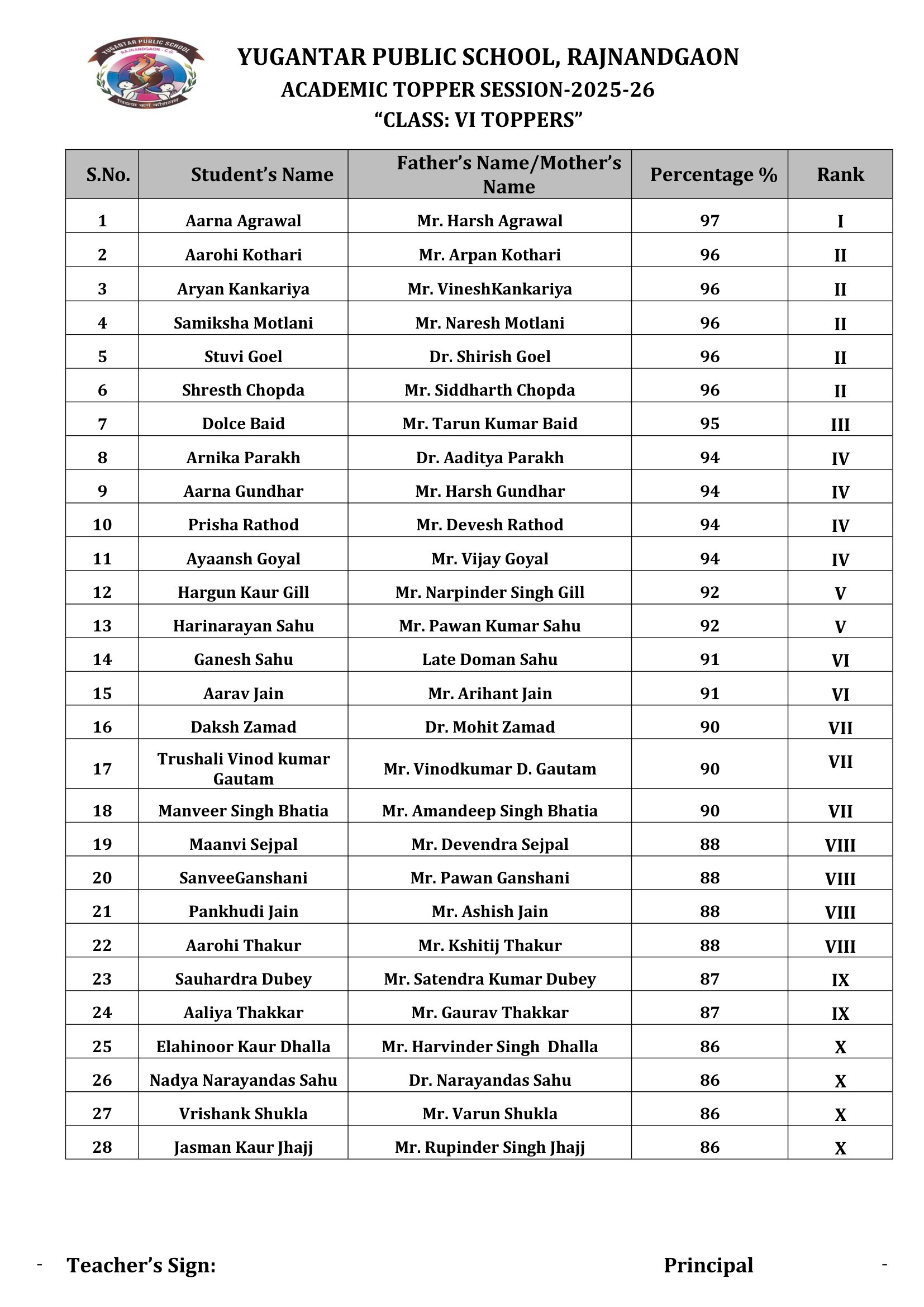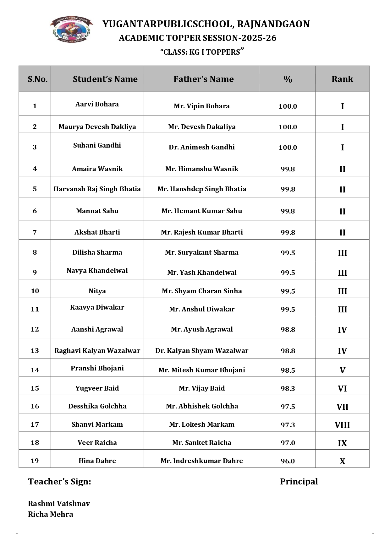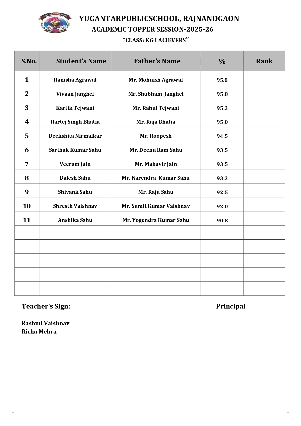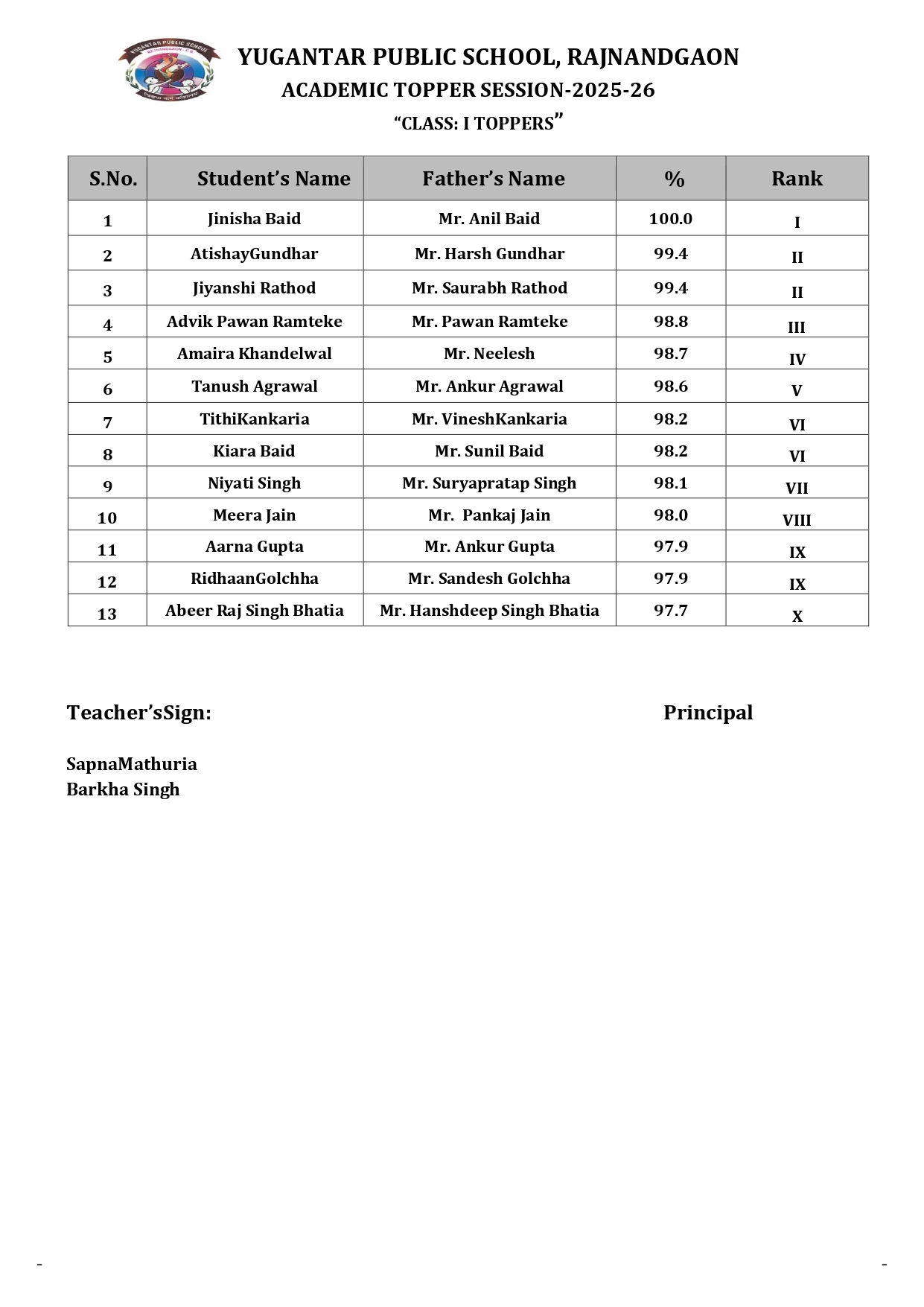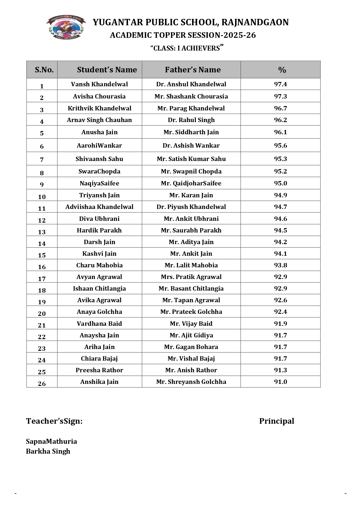 CLASS 1 TOPPERS &ACHIEVER’S 2025-26 |