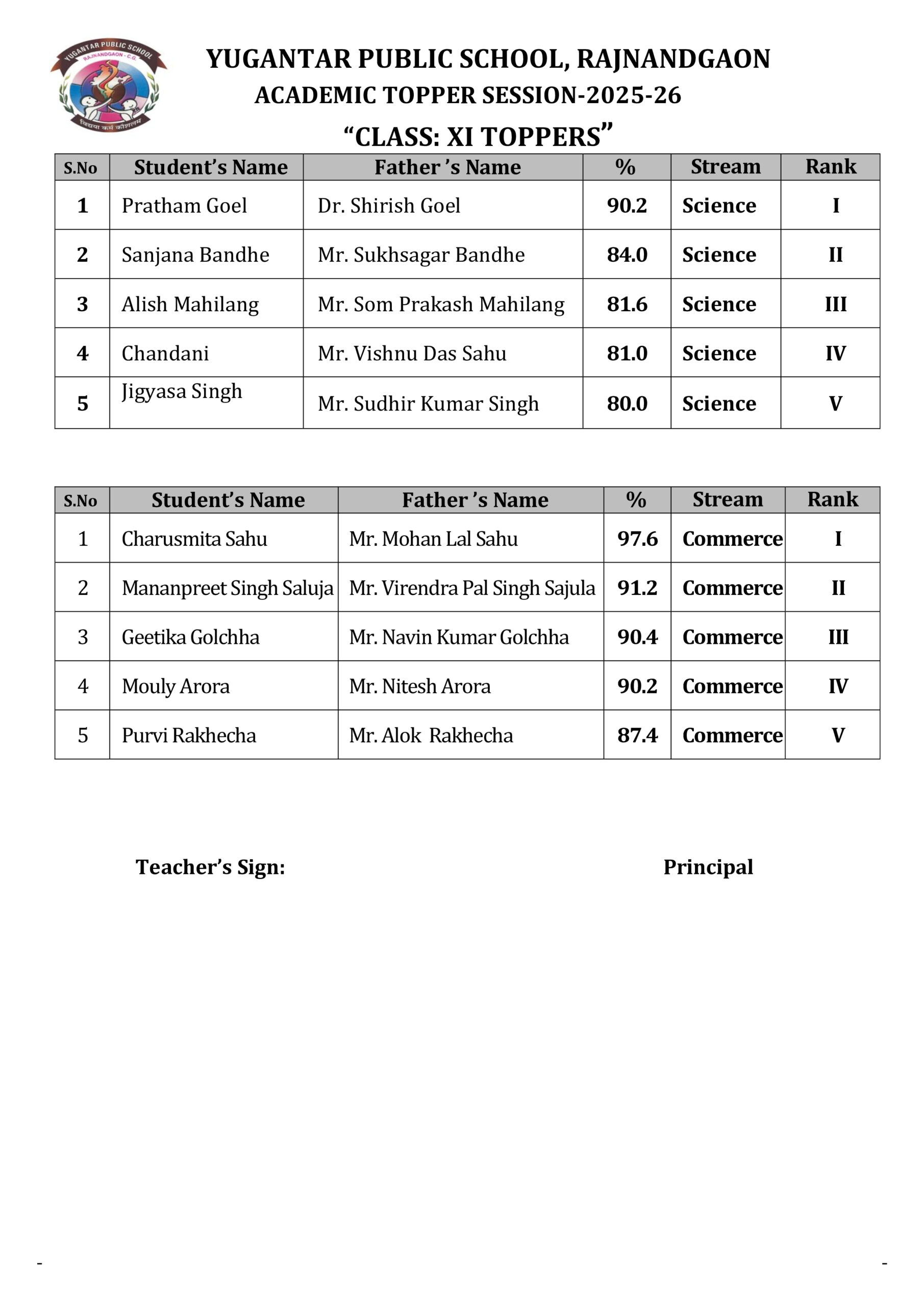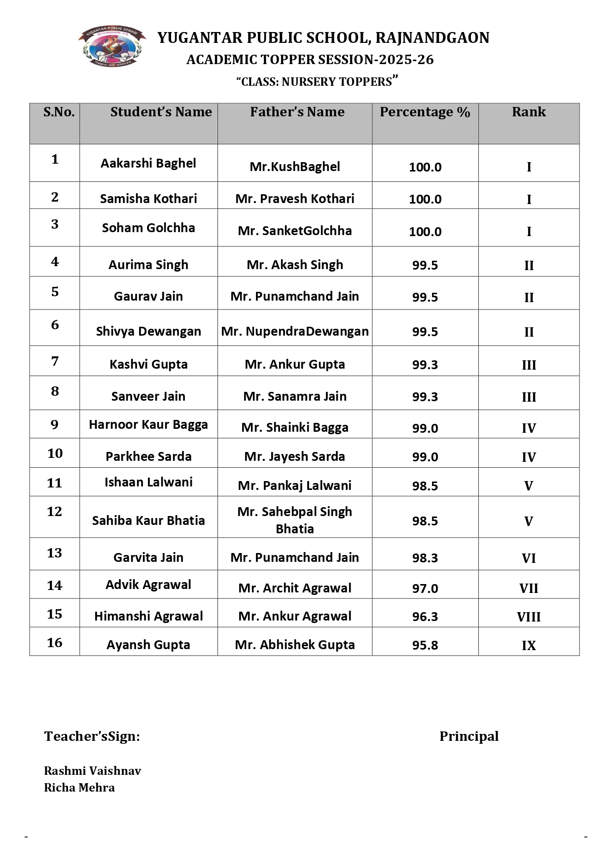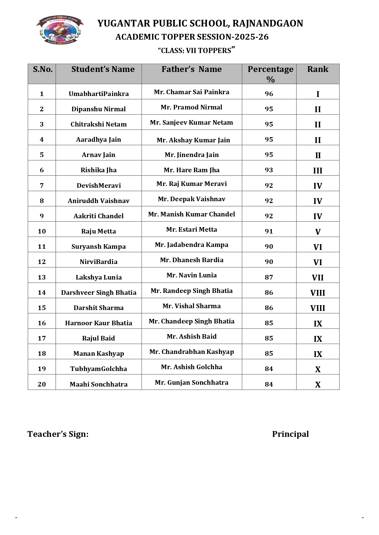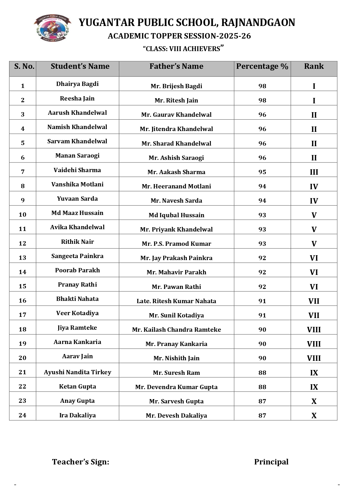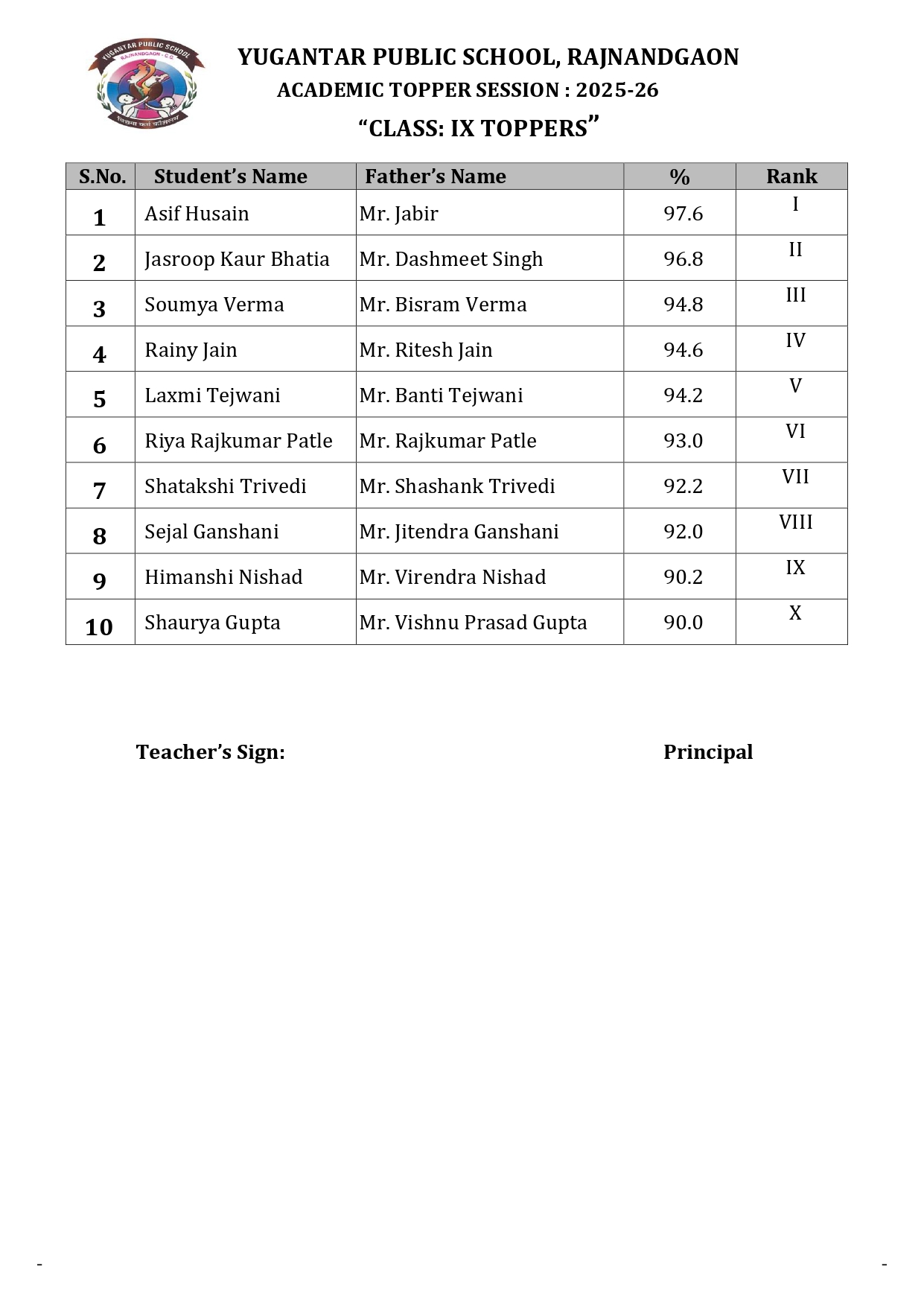 CLASS 1 TOPPERS &ACHIEVER’S 2025-26 |