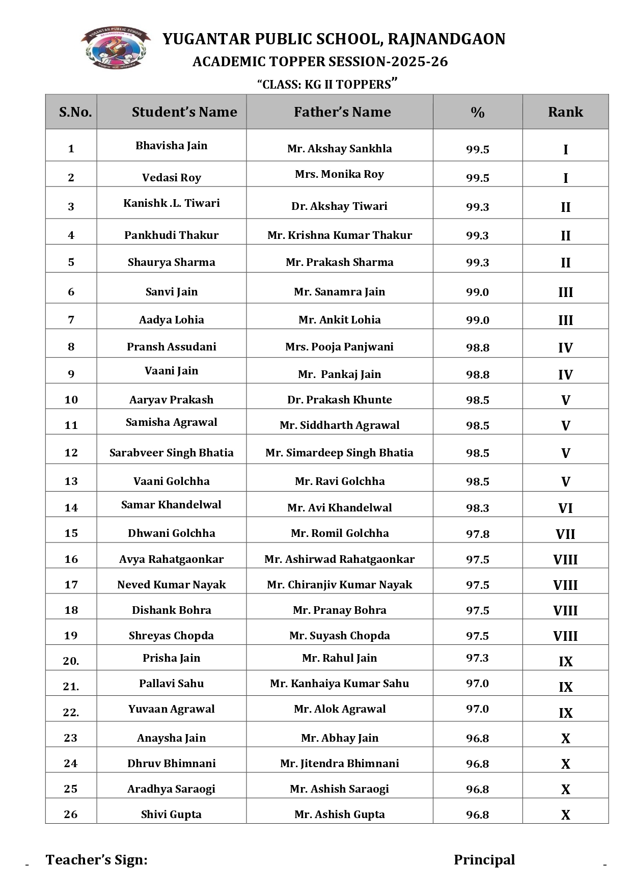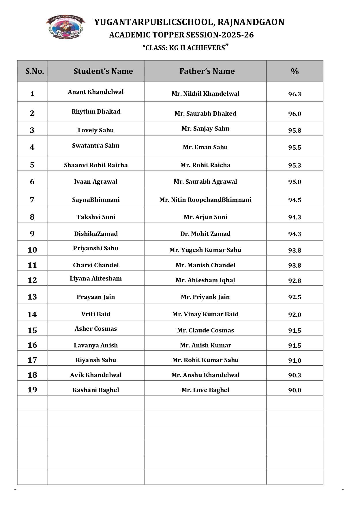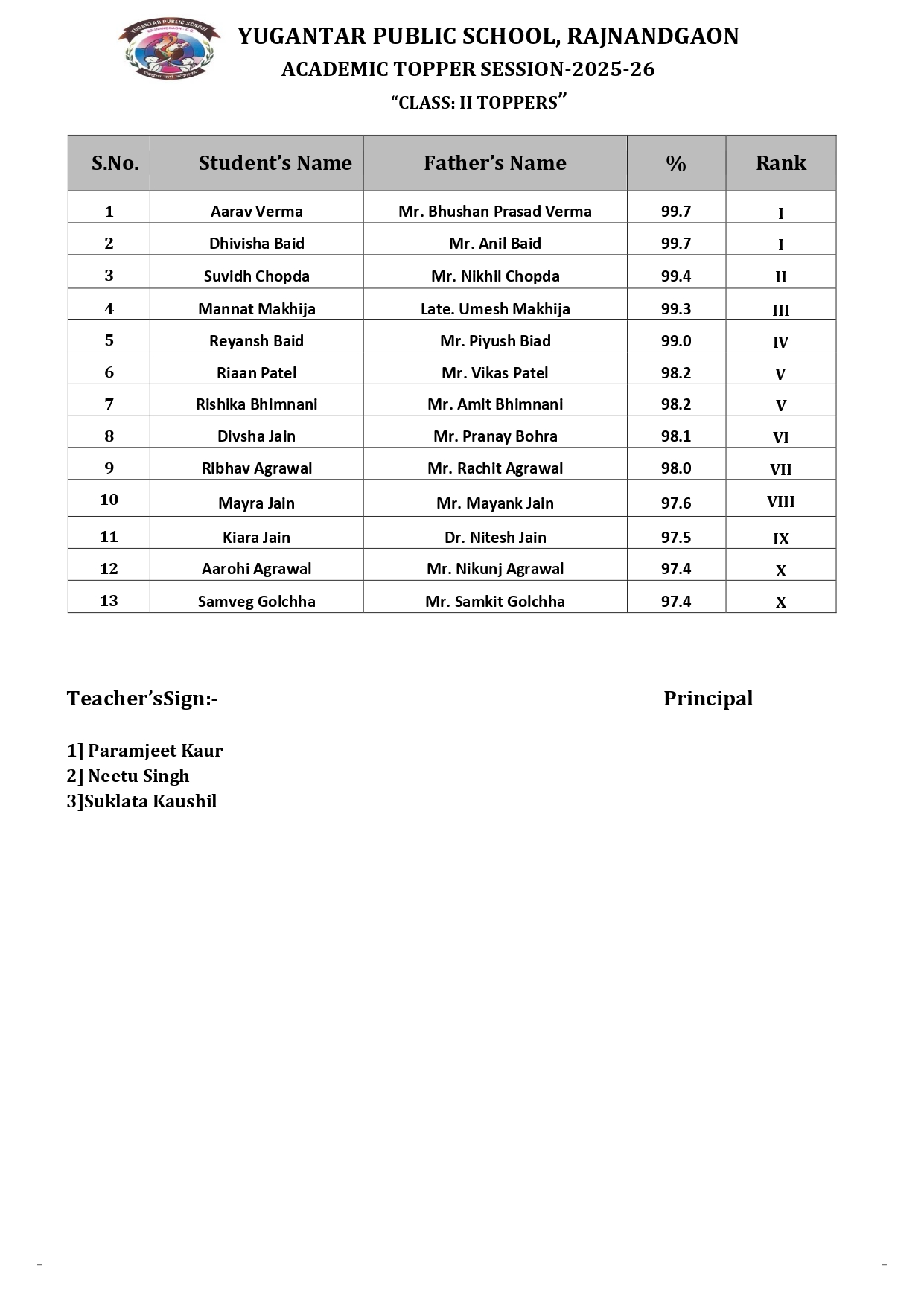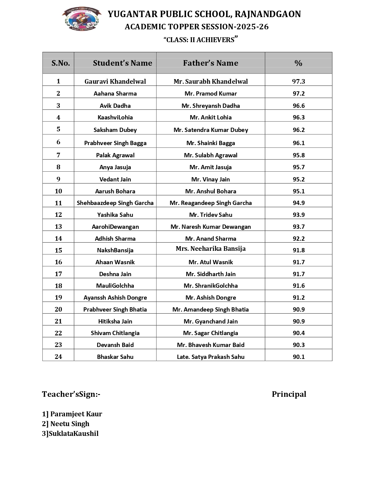 CLASS 2 TOPPERS &ACHIEVER’S 2025-26 |