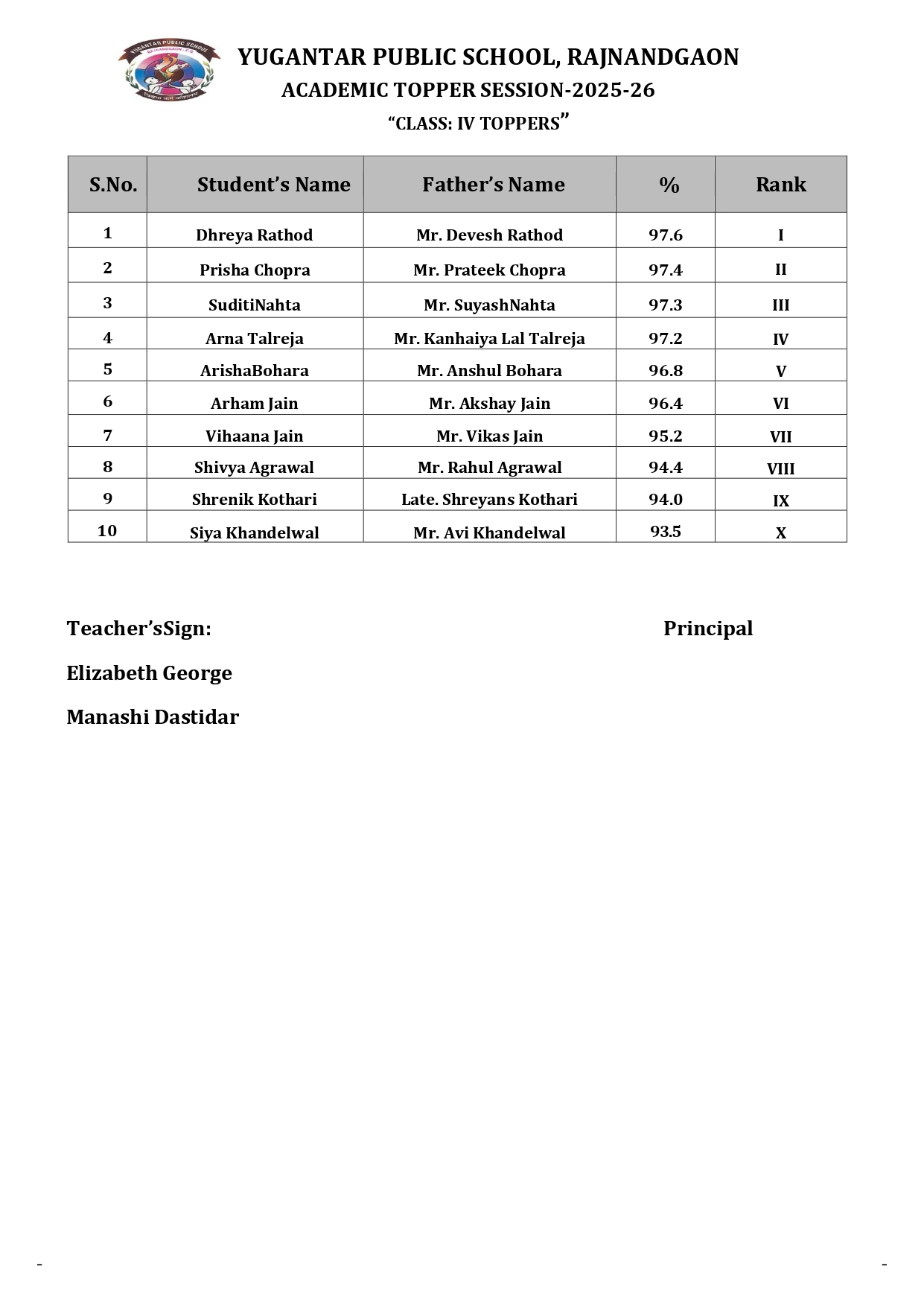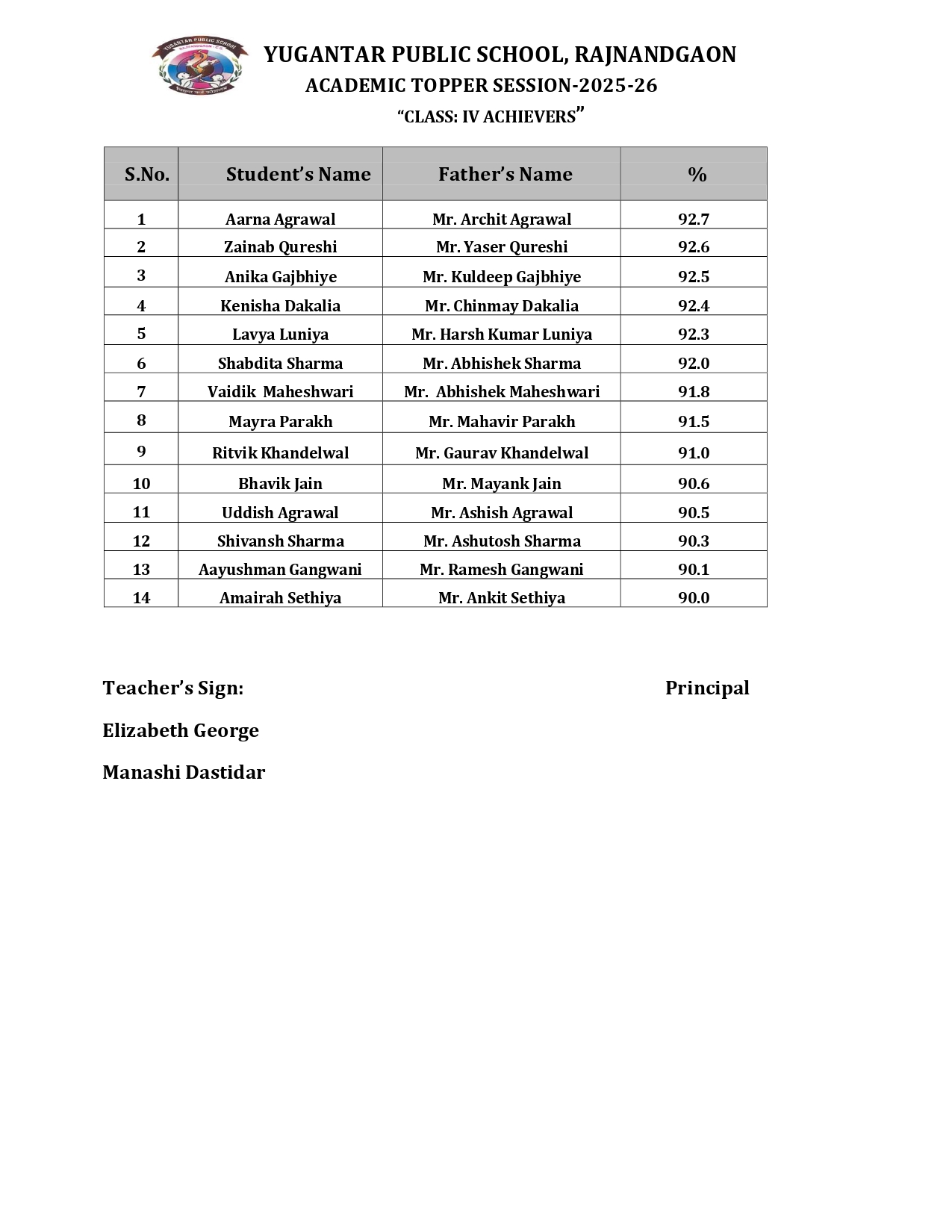 CLASS 4 TOPPERS &ACHIEVER’S 2025-26 |