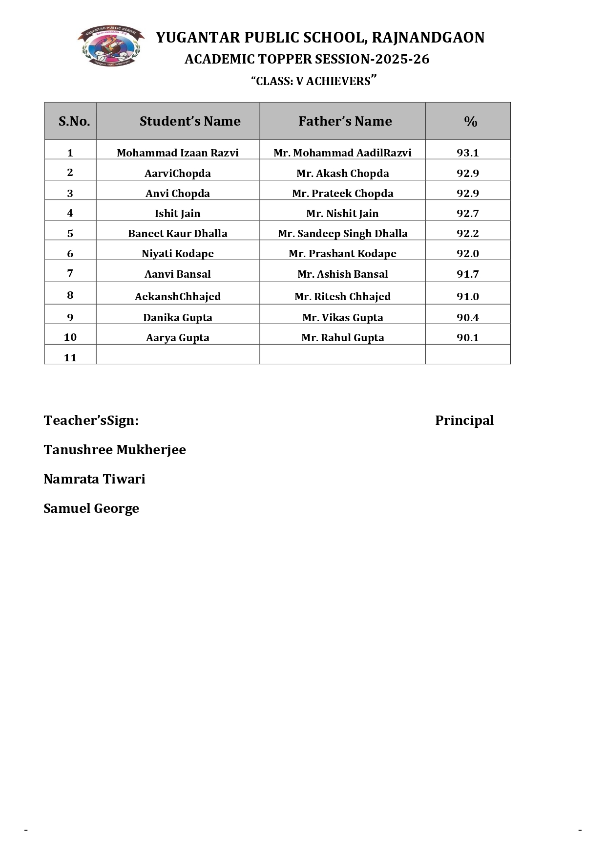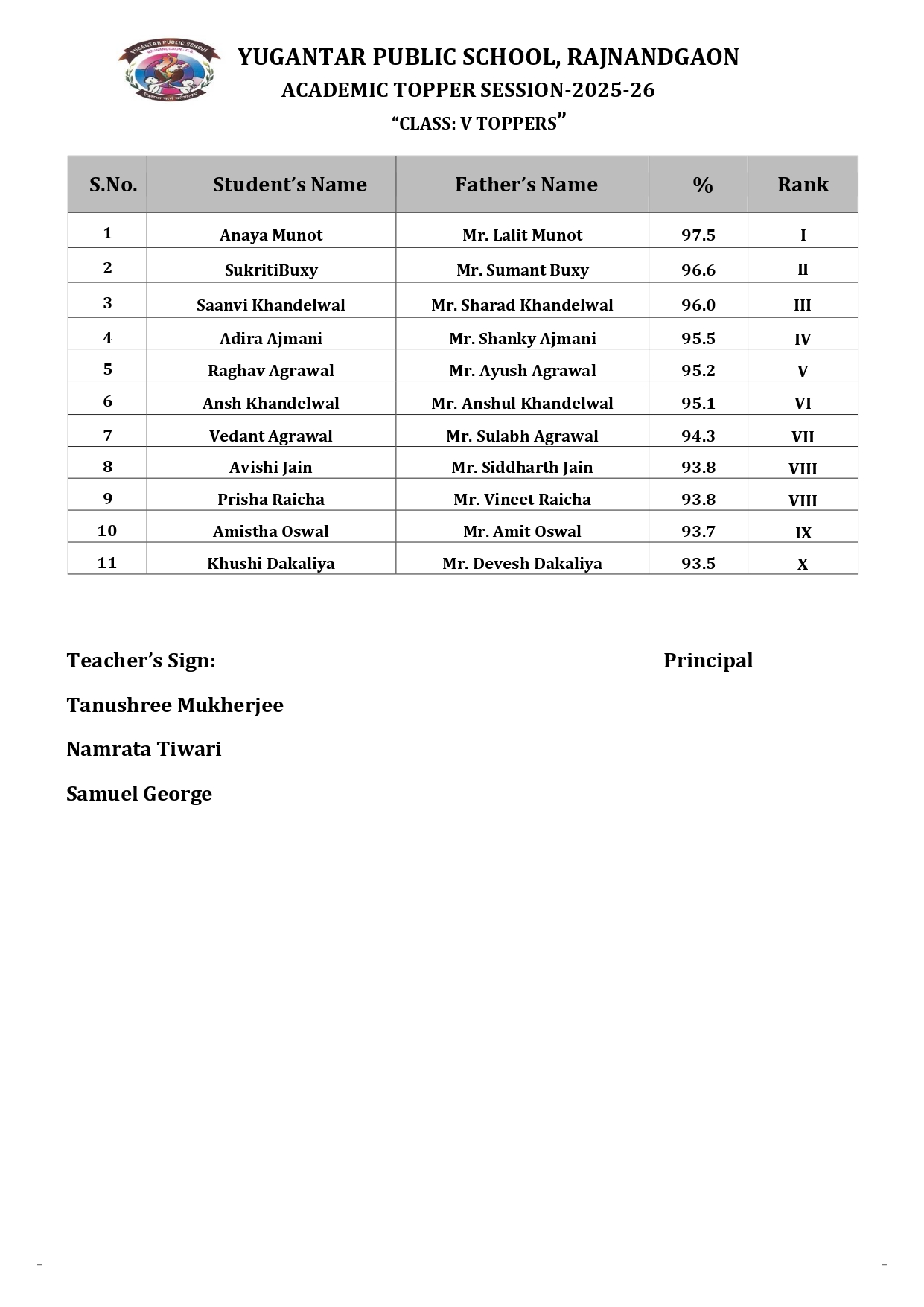 CLASS 5 TOPPERS &ACHIEVER’S 2025-26 |